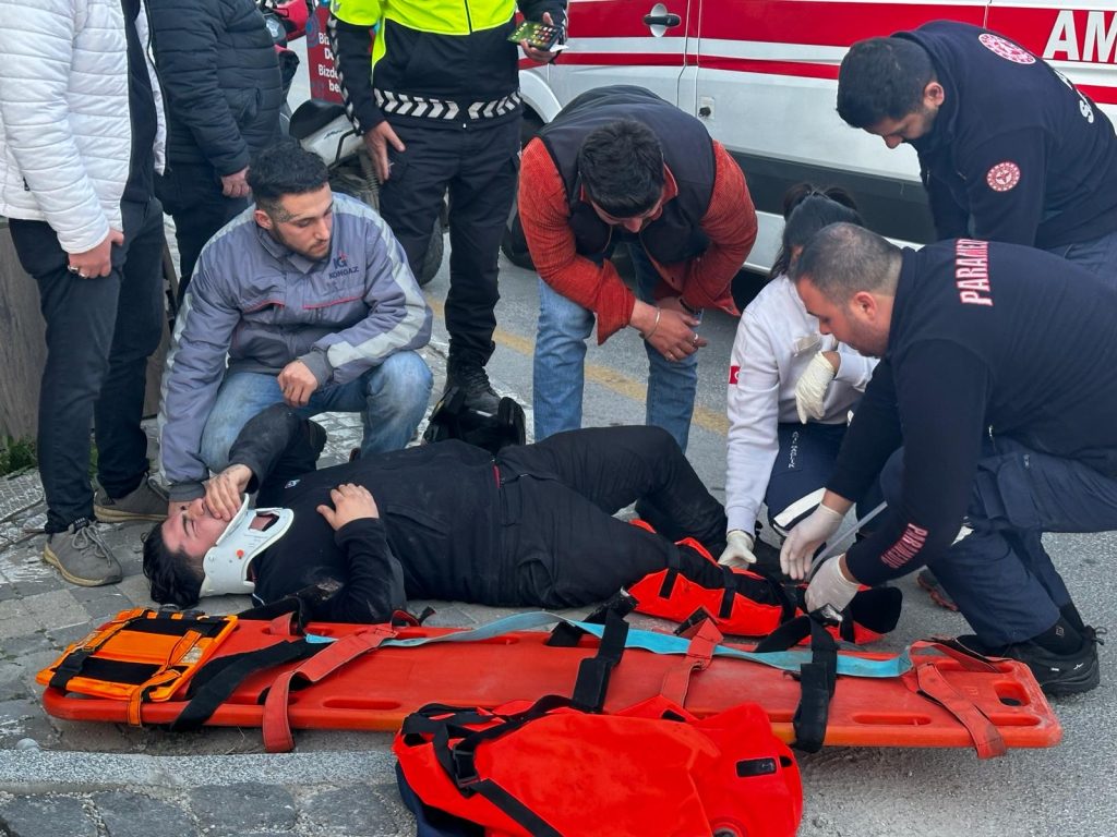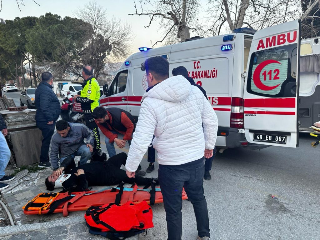 Kazada yaralanan motosikletli kurye H.R.Ç. olay yerine gelen 112 Acil sağlık ekiplerince Milas Devlet Hastanesine götürüldü.