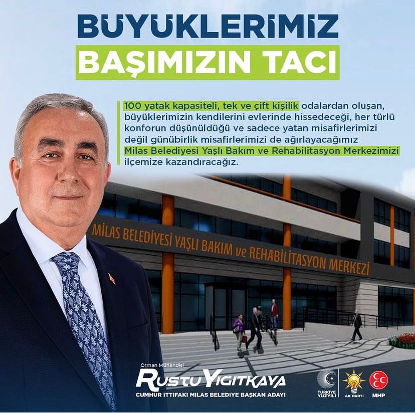 Cumhur İttifakı Milas Belediye Başkan Adayı Rüştü Yiğitkaya, seçilmesi durumunda önümüzdeki 5 yılda uygulayacağı projeleri kamuoyu ile paylaşmaya başladı. “En önemli projem diyerek” açıkladığı ilk projesi Milas Belediyesi Yaşlı Bakım ve Rehabilitasyon Merkezi’nin ilçeye kazandırılması…