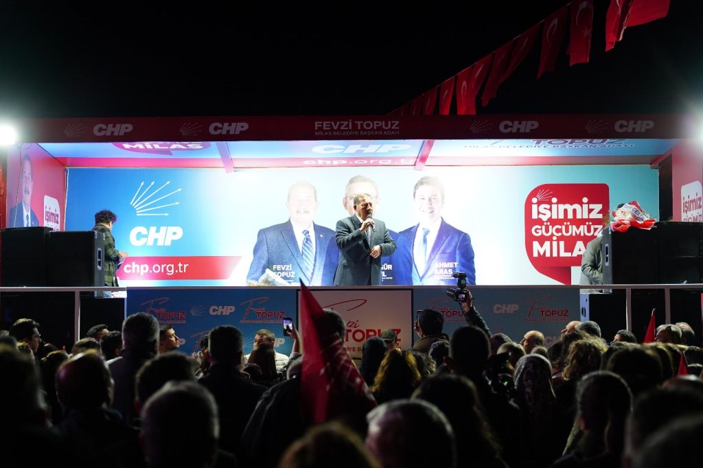 Konuşmasını tamamlamasının ardından belediye meclis üyesi adaylarını tek tek kürsüye davet eden Milas Belediye Başkan Adayı Fevzi Topuz, listelerinde çeşitli meslek kollarından meclis üyesi adaylarının bulunduğunu belirterek, hep birlikte Milas için başarılı çalışmalar gerçekleştireceklerini ifade etti.