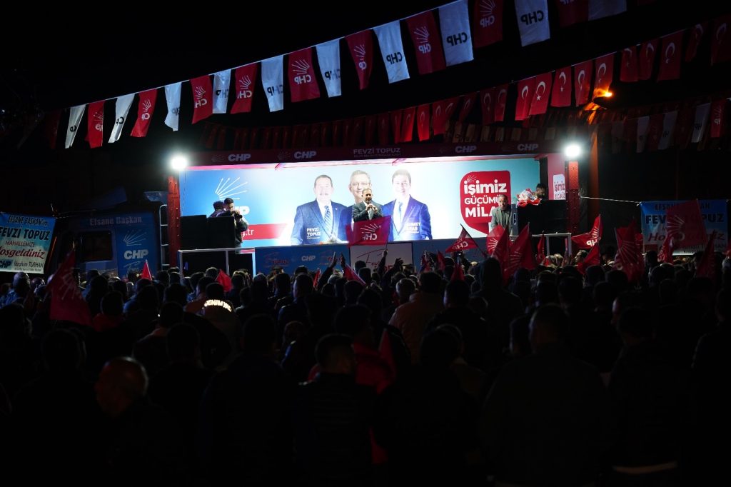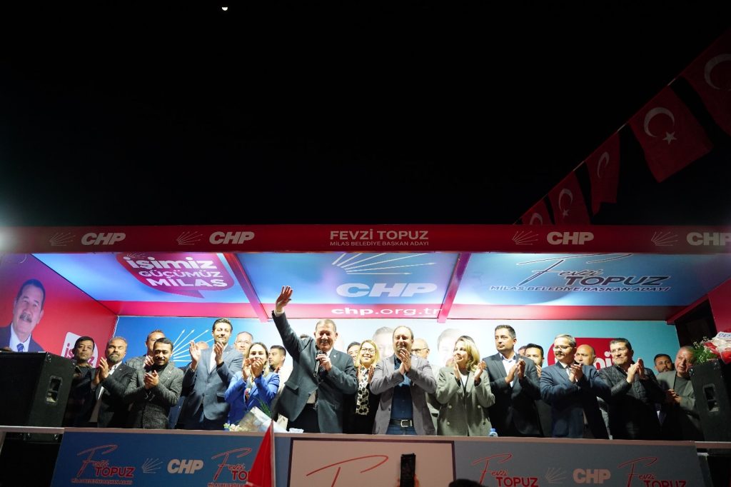 CHP Milas İlçe Başkanı Tüze Çetinkaya’nın ardından sahneye Milas Belediye Başkan Adayı Fevzi Topuz davet edildi. Alkışlar ve sloganlar eşliğinde sahneye gelen Başkan Adayı Topuz, Kırcağızlı vatandaşları selamladı.