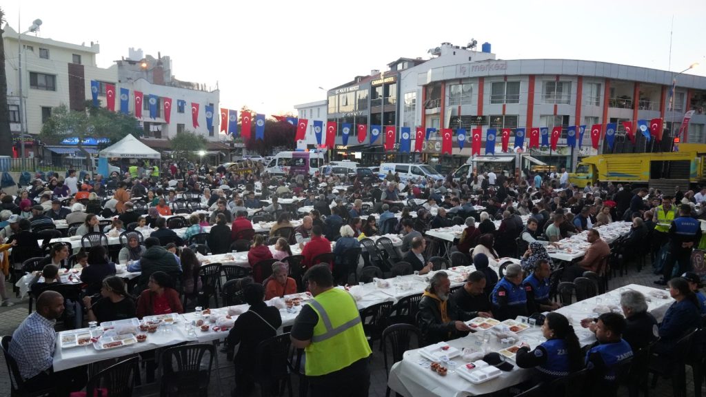 Milas Belediyesi tarafından gelenekselleşerek şehrin birlik ve beraberliğini pekiştiren iftar yemeği, bu kez Güllük Belediye Meydanı’nda gerçekleşti.