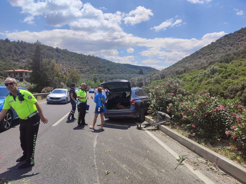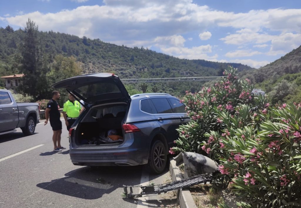 Muğla’nın Milas ilçesinde bir otomobil, köpeğe çarpması sonucu direksiyon hakimiyetini kaybederek karşı şeride geçip orta refüje çarptı.