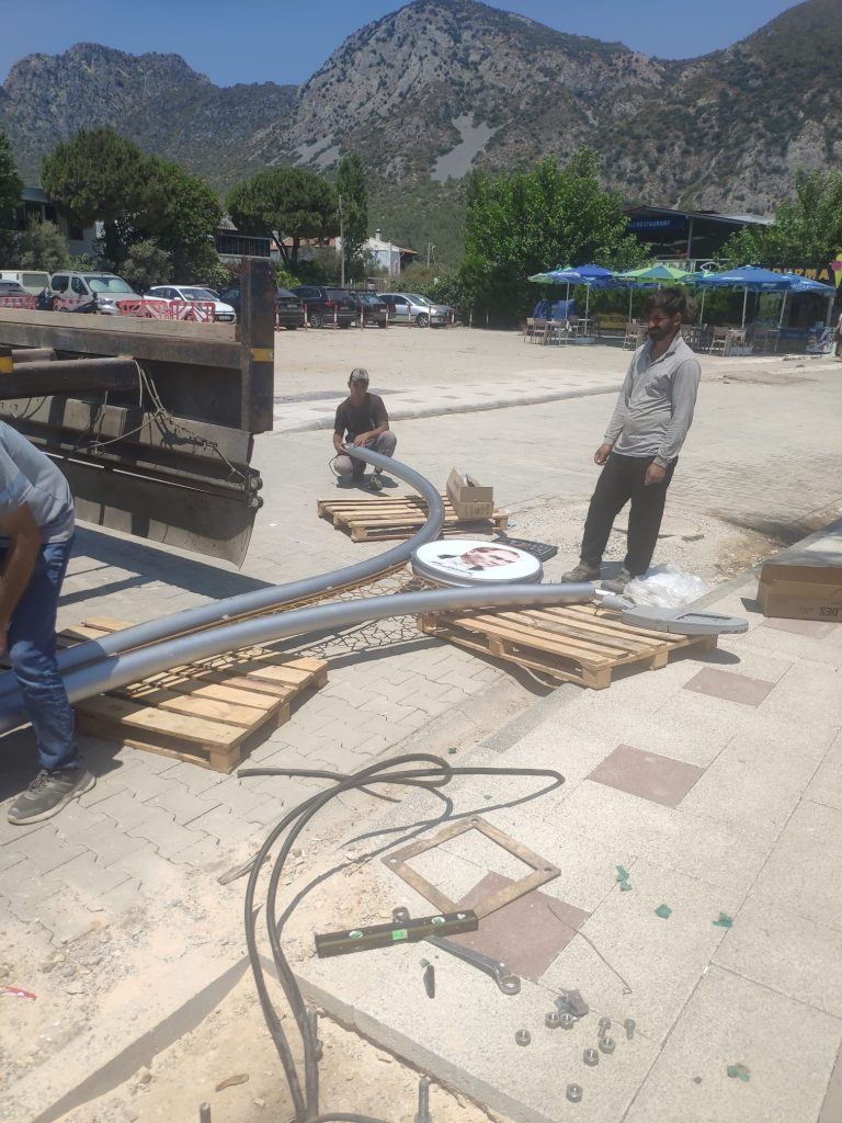 Kazılan yolların yeniden düzenlenmesinin tamamlandığı noktalarda başlanan çalışmalarda şu ana kadar 7 direğin montajı tamamlanarak enerji verilmeye başlandı. Proje kapsamında yaklaşık 1000 mt lik alanda toplamda 27 direk montajı gerçekleştirilecek.