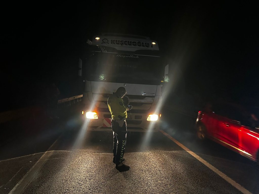 Kazanın ardından yol güvenliği sağlanırken, tır şoförünün dikkati takdir topladı.